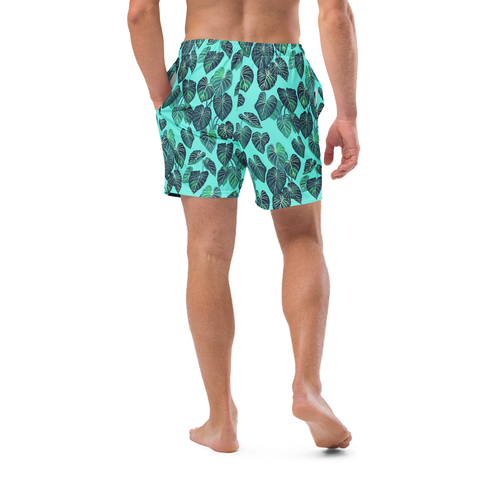 Dive into style with our men's swim trunks, inspired by the Philodendron gloriosum leaf. Perfect for your next beach day.
